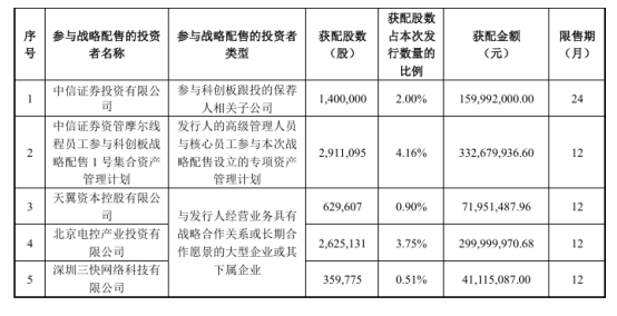 摩尔线程发布首次公开发行股票并在科创板上市网下初步配售结果及网上中签结果公告,本次发行战略配售的缴款及配售工作已结束,本次发行最终战略配售结果如下。中签号码共有33600个,每个中签号码只能认购500股摩尔线程A股股票。