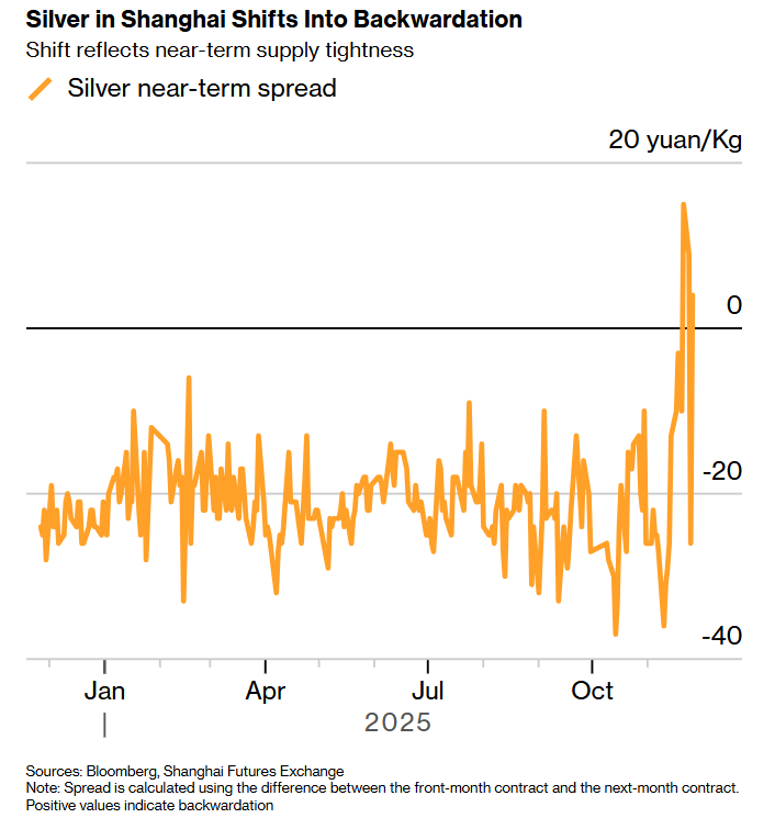 上海白银市场转为现货溢价,这种转变反映了近期供应紧张