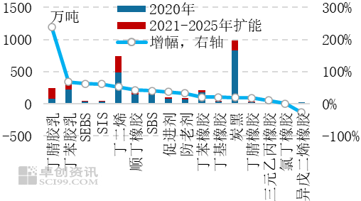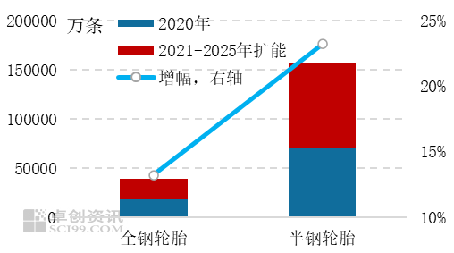 图1 “十四五”期间橡胶产品产能增长情况 |