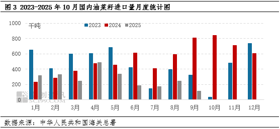9月份之后,国内企业已经陆续停止进口加拿大油菜籽,由于加拿大油菜籽在国内进口油菜籽中占比较大,因此国内油菜籽进口量也不断减少。据中华人民共和国海关数据显示,10月份国内油菜籽进口量已经降至0吨,国内进口油菜籽压榨油厂已经无油菜籽可榨,据卓创资讯统计,油厂开工负荷率也在10月份陆续下降至0%。