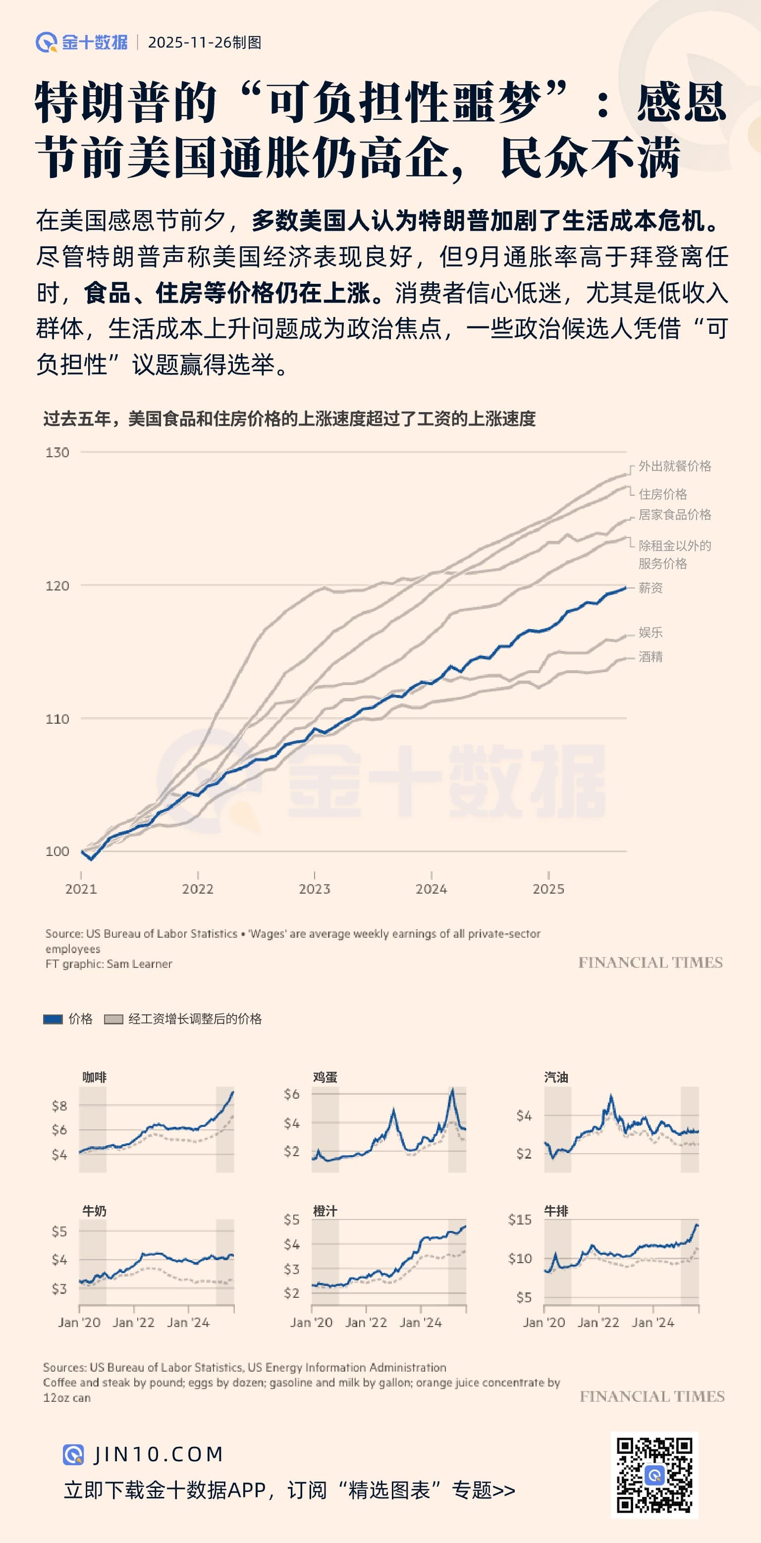 特朗普的“可负担性噩梦”:感恩节前美国通胀仍高企,民众不满