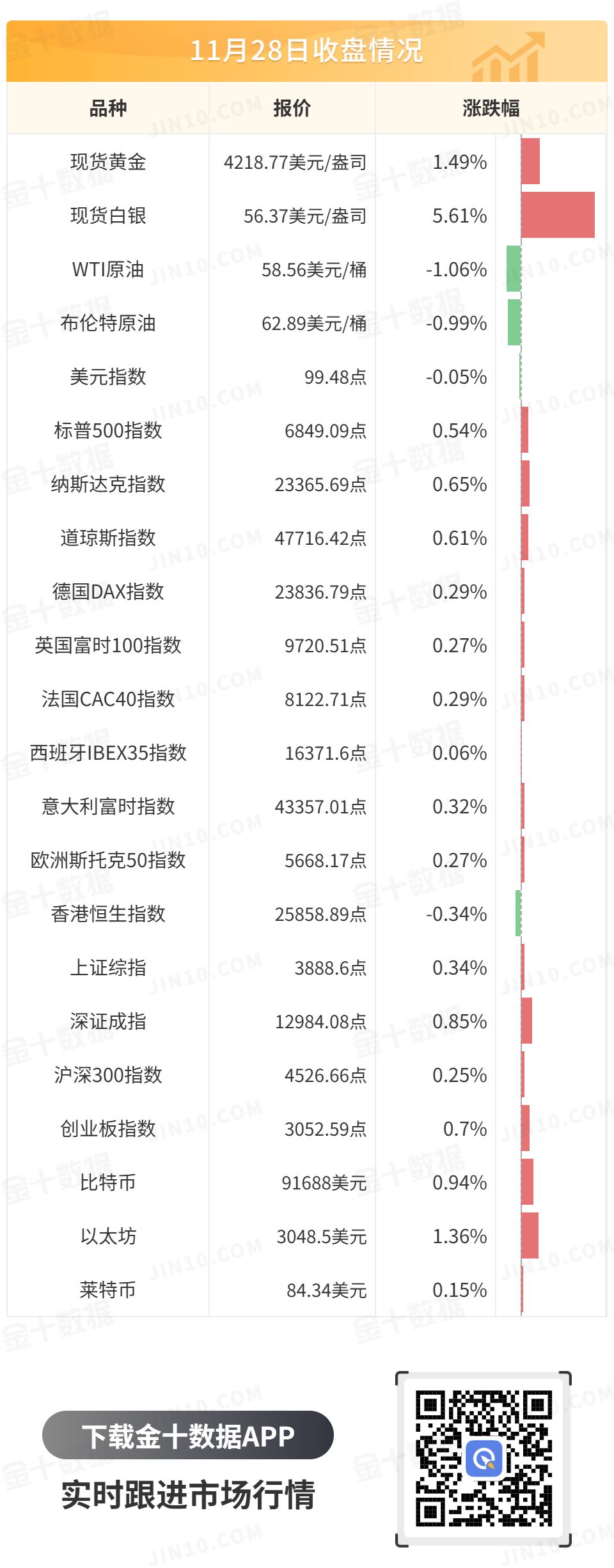 欧洲主要股指全线收涨,德国DAX30指数收涨0.29%;英国富时100指数收涨0.27%;欧洲斯托克50指数收涨0.27%。