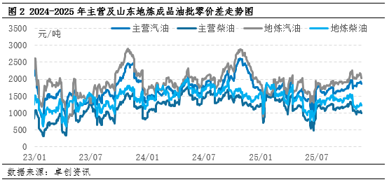 本月下旬,原油价格整体呈现出震荡下行趋势,核心影响因素主要是欧洲和平谈判进展向好,地缘溢价继续回吐,而12月份沙特将继续增产也利空于原油价格走势。但是由于美国原油库存去库、美联储大概率降息以及欧洲局势谈判短期难以完成等情况影响,原油价格底部仍存支撑,因此价格震荡为主,均值环比下跌。受此影响,国内成品油零售限价于11月24日24时经历下调后,新周期的原油变化率仍处于负值范围内,国内市场观望情绪持续浓厚,业者对后市缺乏信心,进购意愿低迷。此外,虽然下旬国内部分地区柴油现货资源依旧偏紧,但是随着气温降低以及物流运输活跃度下降,国内柴油需求并无明显提升,因此需求不足抵消了资源偏紧的影响。缺乏利好提振的情况下,下旬贸易单位多消化库存、以销定进为主,大单进购操作较上旬明显减少,从而导致月底柴油库容率较中旬降低。