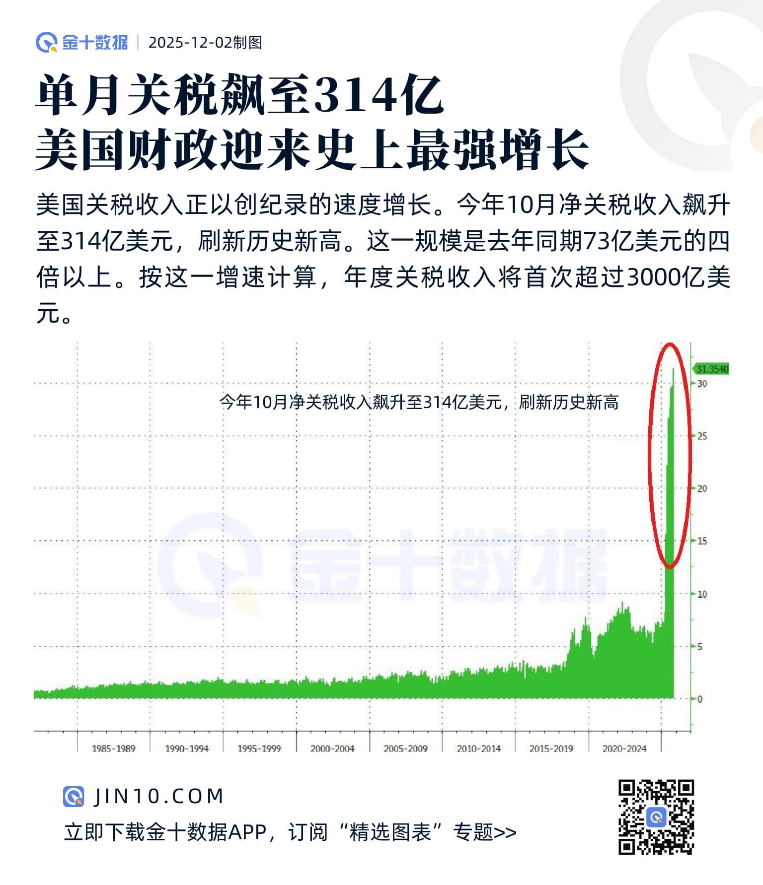 2小时前 单月关税飙至314亿!美国财政迎来史上最强增长