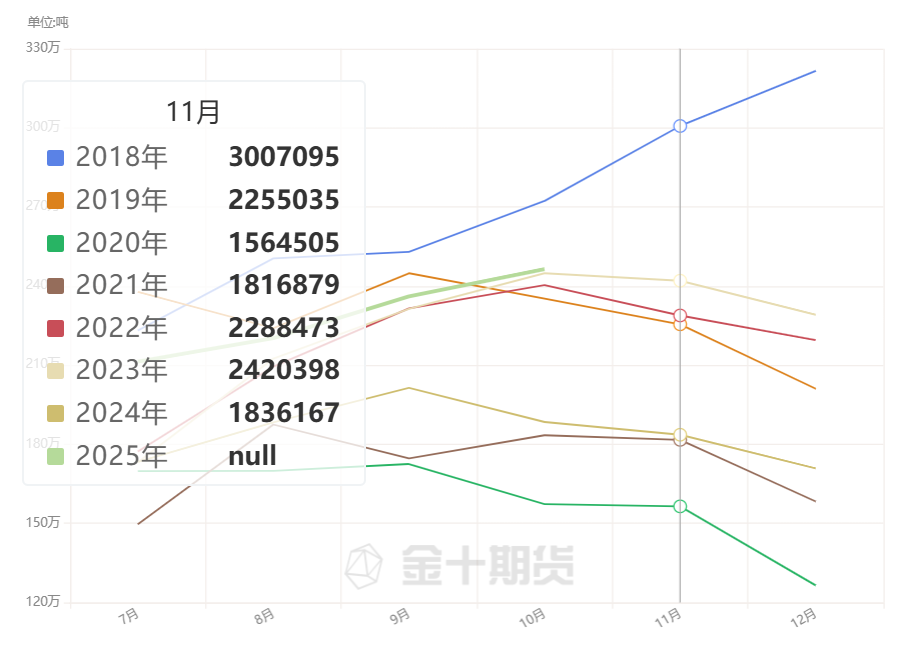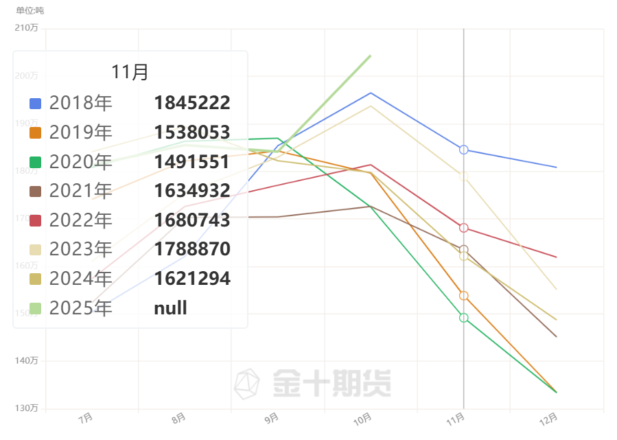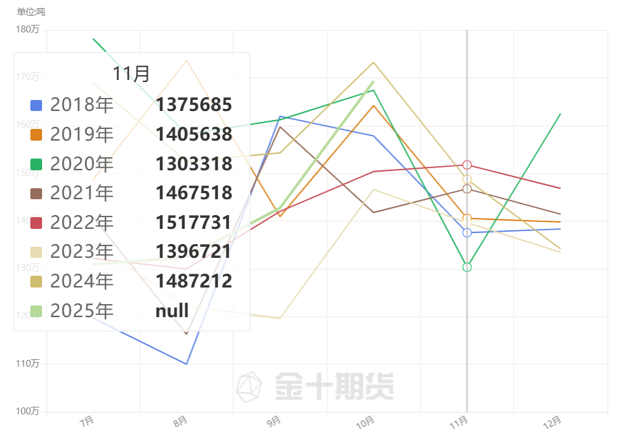 毛油棕榈油产量预计为198万吨,较上月下降3%,但仍是有记录以来11月产量的最高值。这一下降幅度比过去25年来11月平均下降6.8%的幅度要温和。