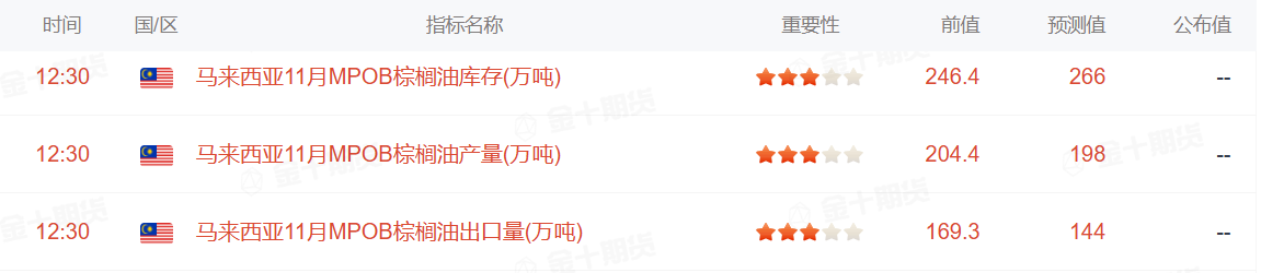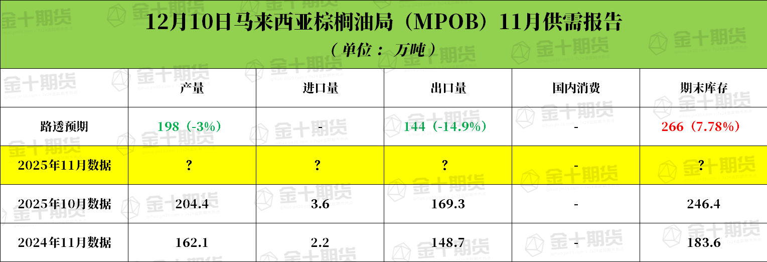 马来西亚棕榈油局(MPOB)将于北京时间12月10日(周三)中午12:30发布11月份马棕油供需数据。
