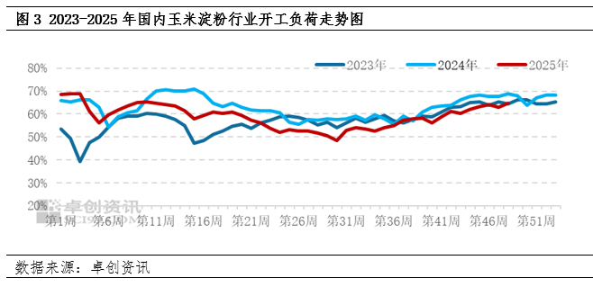 近期玉米淀粉行业开工负荷小幅回升,供应增加主要集中在华北地区。主要是前期山东、河北及安徽地区,部分减产或停产企业恢复正常开工,导致行业开工负荷回升。国内其他地区行业开工负荷整体保持稳定,并未出现明显变化。截止到12月2日,国内玉米淀粉行业开工负荷为64.55%,环比上周回升1.54个百分点。由于新季玉米价格处于低位运行,在行业加工利润丰厚的刺激下,主要企业开工积极性增加,行业供应压力或不断攀升。
