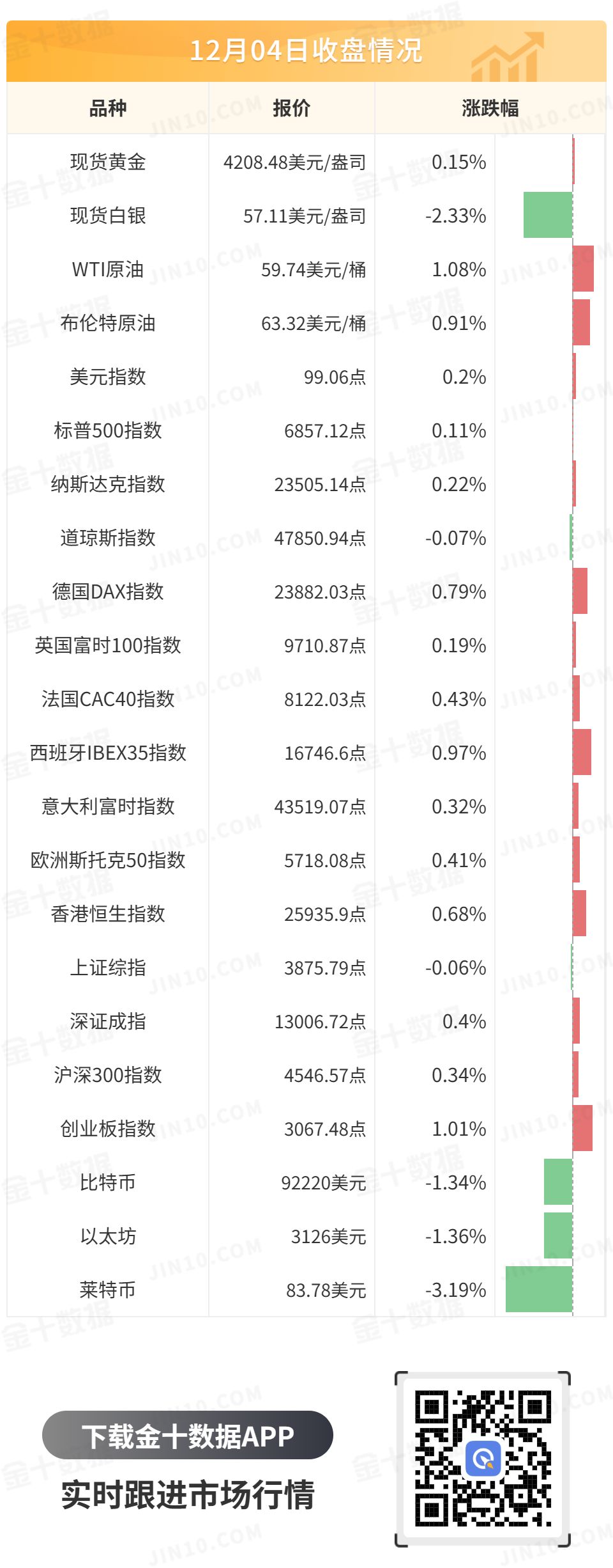 数据显示,美国上周初请失业金人数远低于经济学家预期,降至逾三年来最低水平。现货黄金日内维持震荡走势,最终收涨0.15%,报4208.48美元/盎司;现货白银遭资金获利了结,最终收跌2.33%,报57.11美元/盎司。