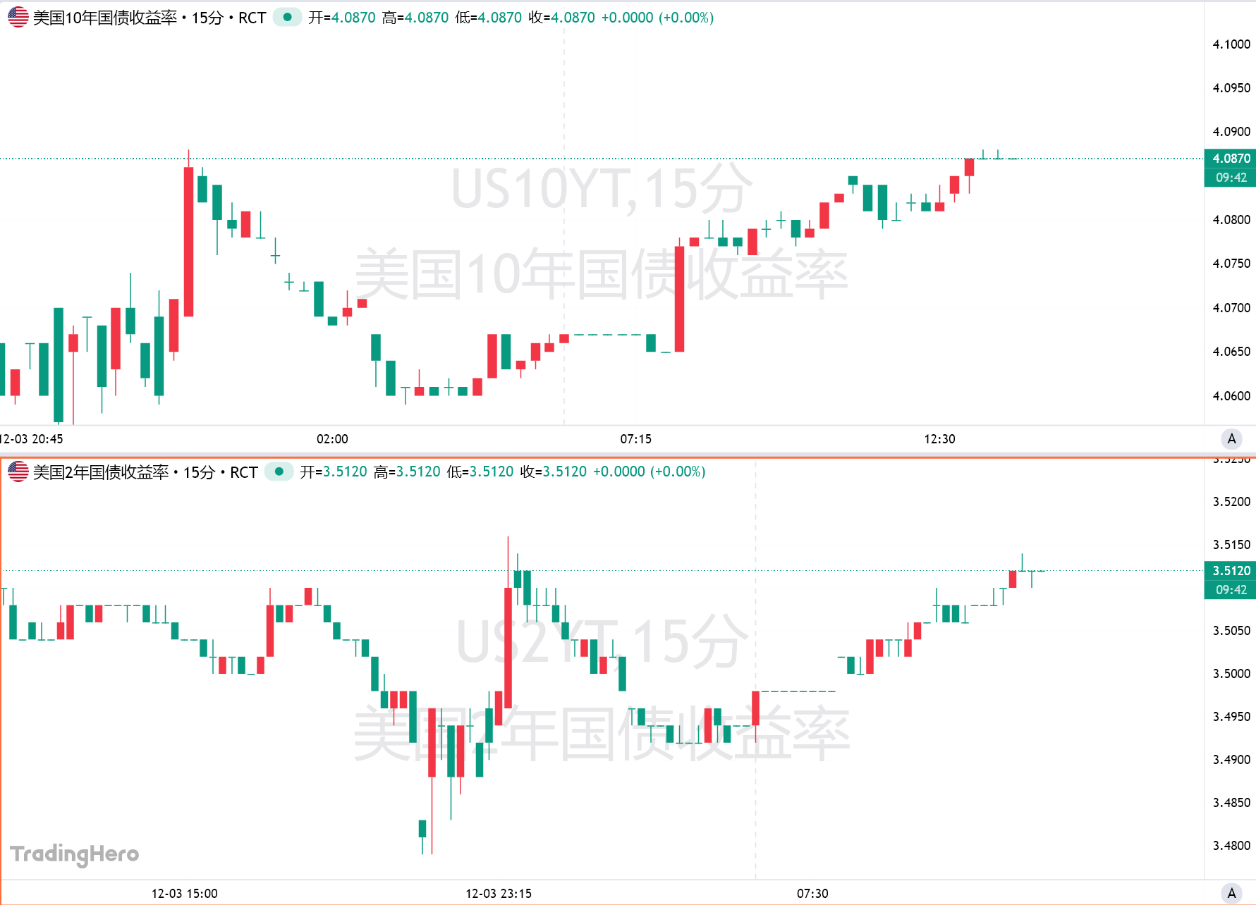 尽管如此,周四亚洲交易时段美国国债收益率变动不大。基准10年期美国国债收益率在周四亚洲早盘维持在4.08%,对政策敏感的2年期国债收益率微涨1个基点至3.50%。