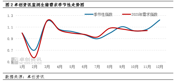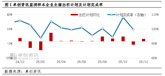 按照生猪生长周期来看,10月前能繁母猪存栏量以及6月前仔猪成活率决定着当前生猪出栏量,据卓创资讯统计中大型养殖企业能繁母猪存栏量环比增加0.17%,叠加新生仔猪数量增加以及新生仔猪成活率微减,育肥猪存栏量同步提升,前期积累的产能在后期持续释放,推动出栏计划环比增加。并且年末阶段,集团猪企为冲击年度出栏目标,会进一步增加出栏量。双重因素影响下,12月养殖端计划出栏量呈现环比增加走势。