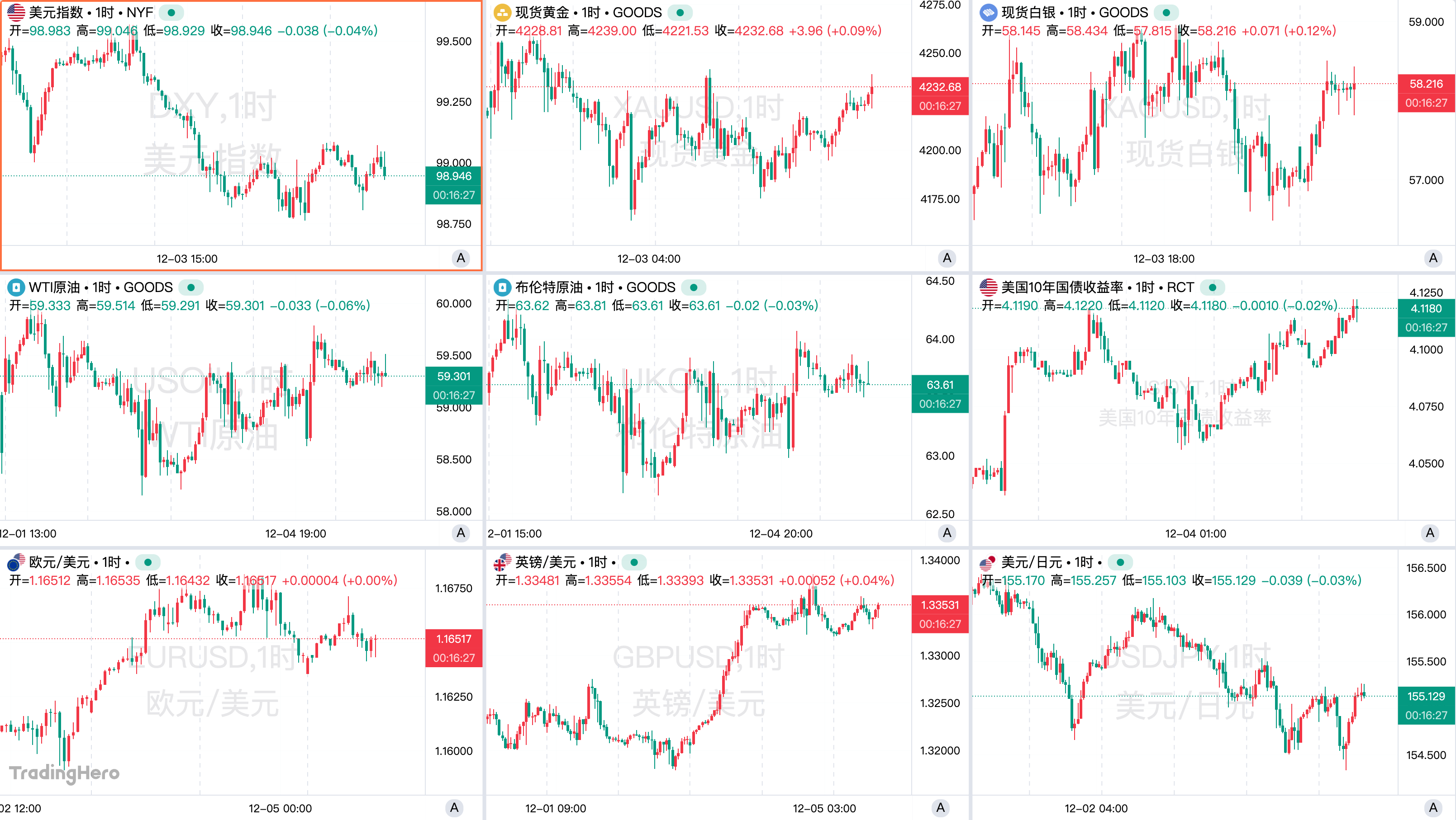 鲍威尔曾于周二出席活动并发表讲话,但内容并未涉及货币政策。美联储将于下周四凌晨3点公布12月利率决议。
