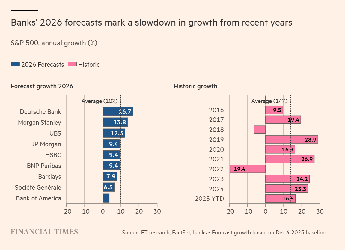 虽然这样的涨幅将是过去8年中的第7年实现双位数增长,但与2025年迄今16.6%的涨幅以及过去十年的平均水平相比,增速将有所放缓。