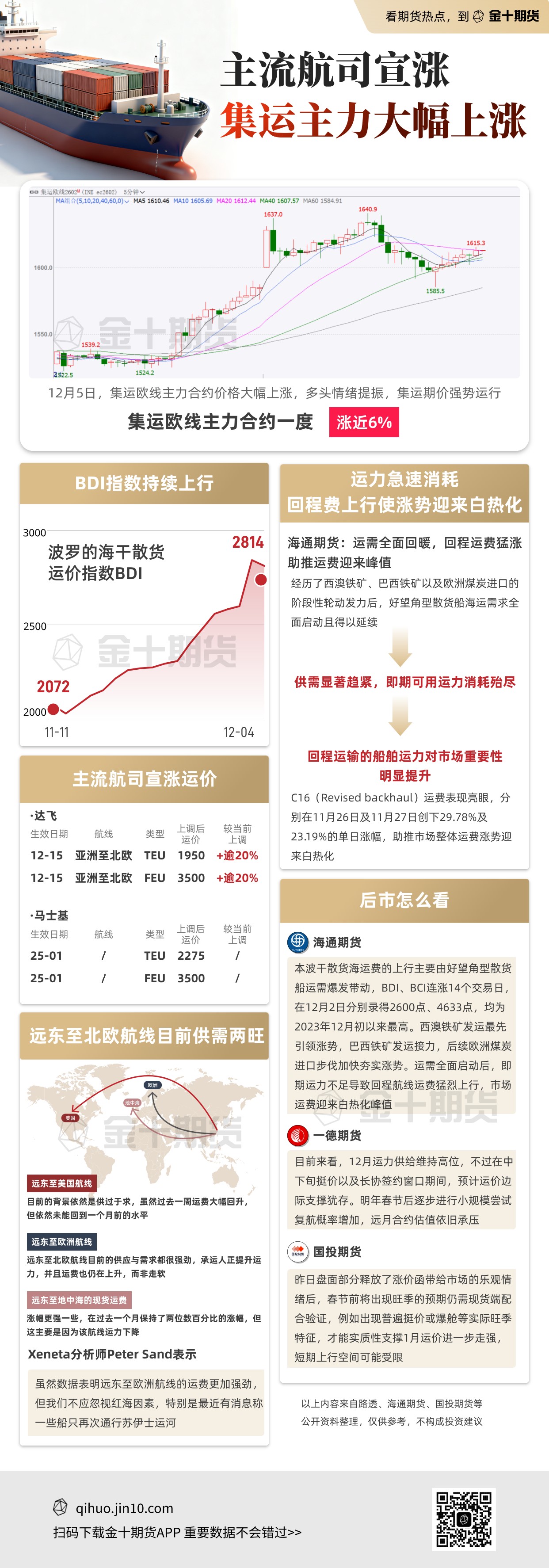 12月5日,集运欧线主力合约大幅走高,多头情绪提振,集运市场发生了什么?一图了解。