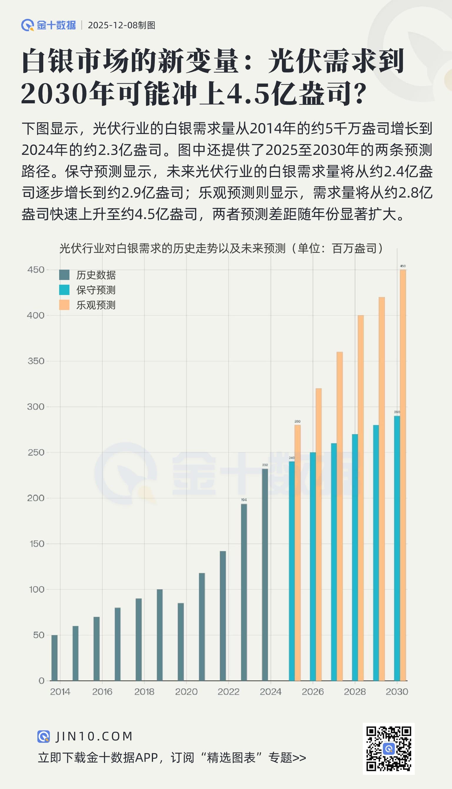 8小时前 白银市场的新变量:光伏需求到2030年可能冲上4.5亿盎司?
