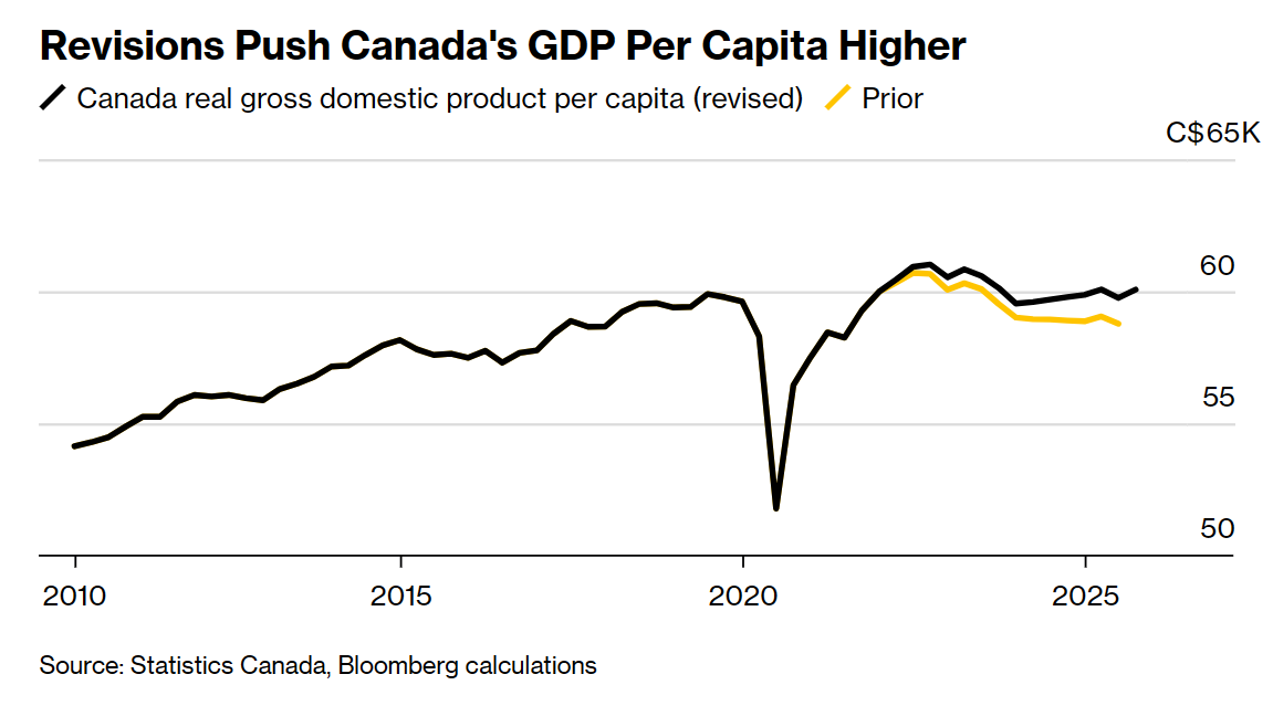 但受进口额大幅下降的支撑,第三季度GDP按年率计算增长了2.6%。房屋销售正在复苏,而加拿大总理卡尼(Mark Carney)的财政支出——包括大规模国防设备采购——已在数据中显现。