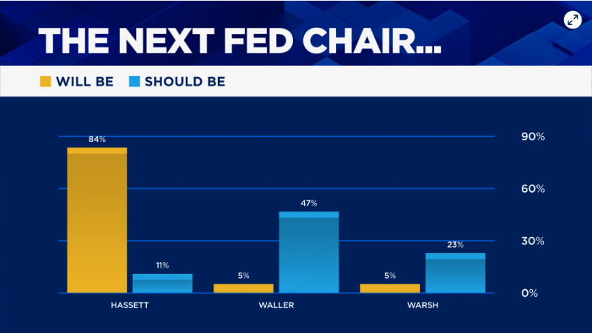 尽管市场普遍预期白宫国家经济委员会主任凯文·哈塞特(Kevin Hassett)将被任命为下一任美联储主席,但CNBC美联储调查的受访者却明确表示他并非首选。