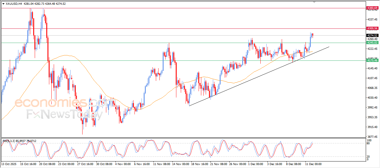 现货黄金在近期的日内交易中略有下跌,巩固了之前强劲上涨的涨幅,试图积蓄上涨势头,为新一轮上涨尝试铺平道路。此前,黄金突破了4245美元的关键阻力位,该阻力位是我们之前分析中的潜在目标。黄金目前获得支撑,原因是其交易持续在50日均线上方,这加强了短期内的积极压力。尽管处于超买状态,但相对强弱指标也出现了积极信号,短期内上涨趋势仍然占据主导地位,并且该趋势继续沿着支撑性次要趋势线进行交易。