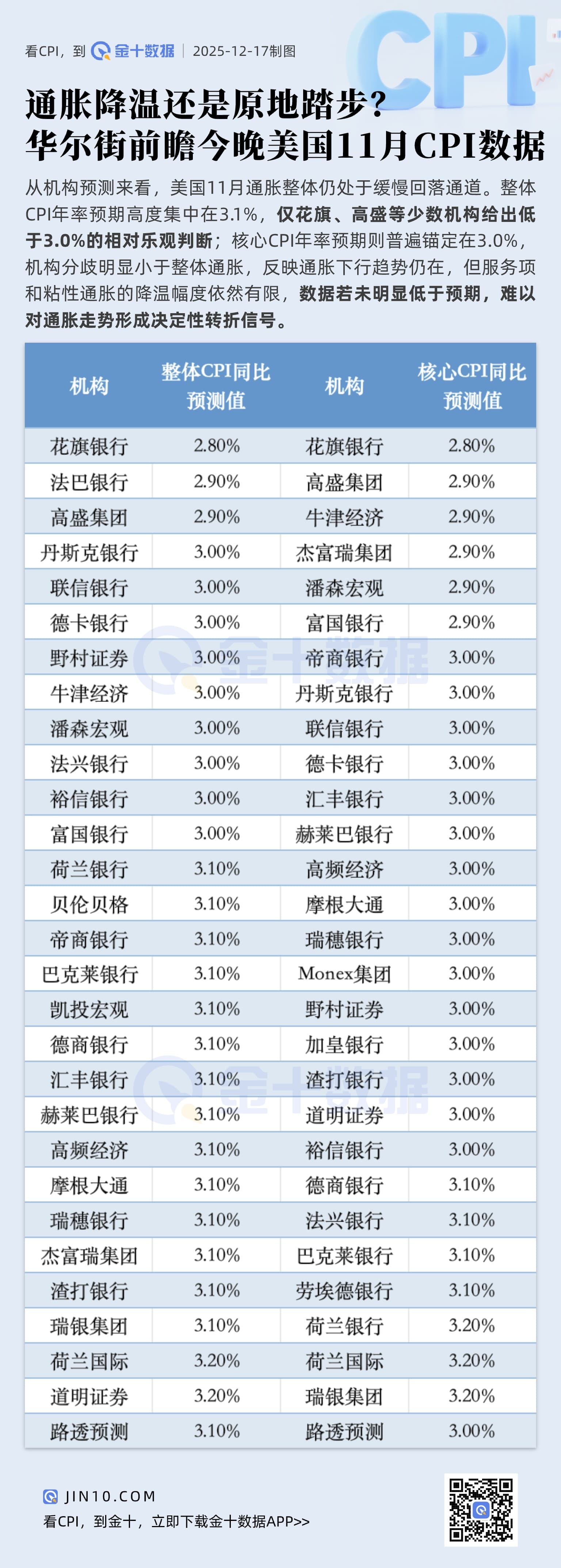 通胀降温还是原地踏步?华尔街前瞻今晚美国11月CPI数据