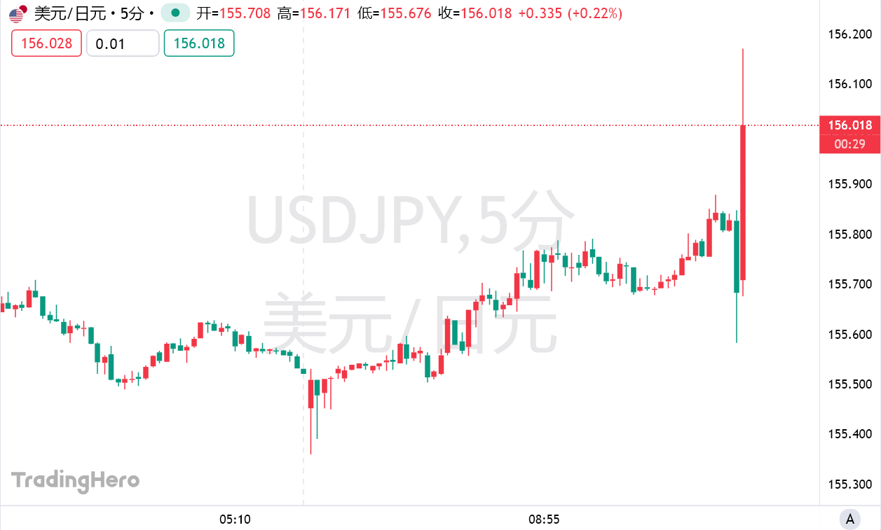 声明发布后,美元兑日元短线拉升近60点,突破156,日内涨约0.3%。日经225指数小幅走高,涨约1.16%。