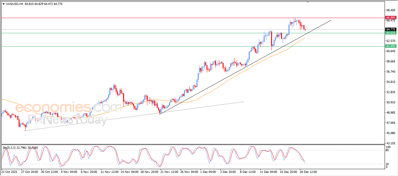 Economies.com的分析师今日最新观点:现货白银价格在上一交易日内出现下跌,试图寻找一个上升低点,以此作为基础,帮助其获得所需的上涨动能实现反弹。在主要多头趋势主导下,现货白银沿着支撑性趋势线进行交易,同时其价格持续处于EMA50均线上方,形成动态支撑,进一步增强了未来一段时间内反弹的可能性。尤其是在相对强弱指标(RSI)达到超卖水平时,表明空头动能迅速减弱,现货白银有望迎来快速反弹。