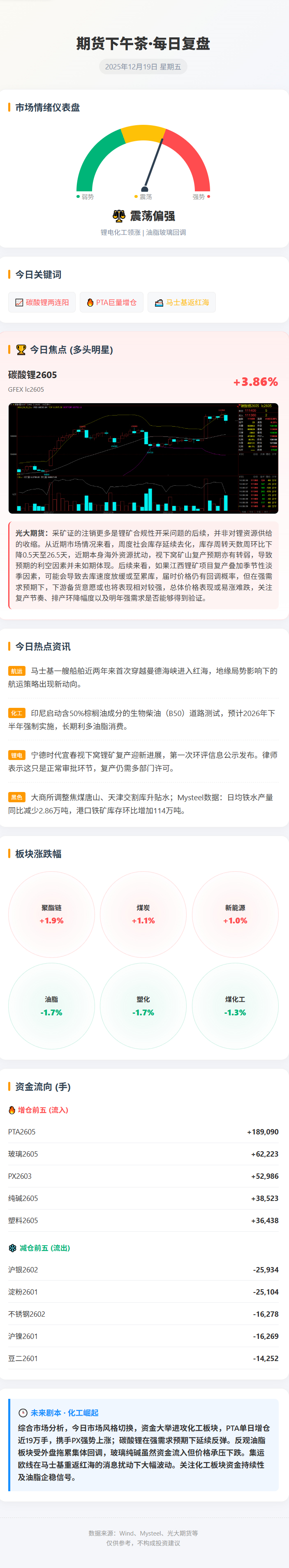 新湖期货表示,从现阶段基本面来看暂未出现显著变化,供给端暂未出现明显超预期宽松迹象,12月需求侧动力端或有所退坡,储能端韧性仍存,最新周度碳酸锂库存环比-0.94%,去化速率放缓,从结构上看冶炼厂和下游环节去化速度仍较快。预计短期锂价仍偏强运行。