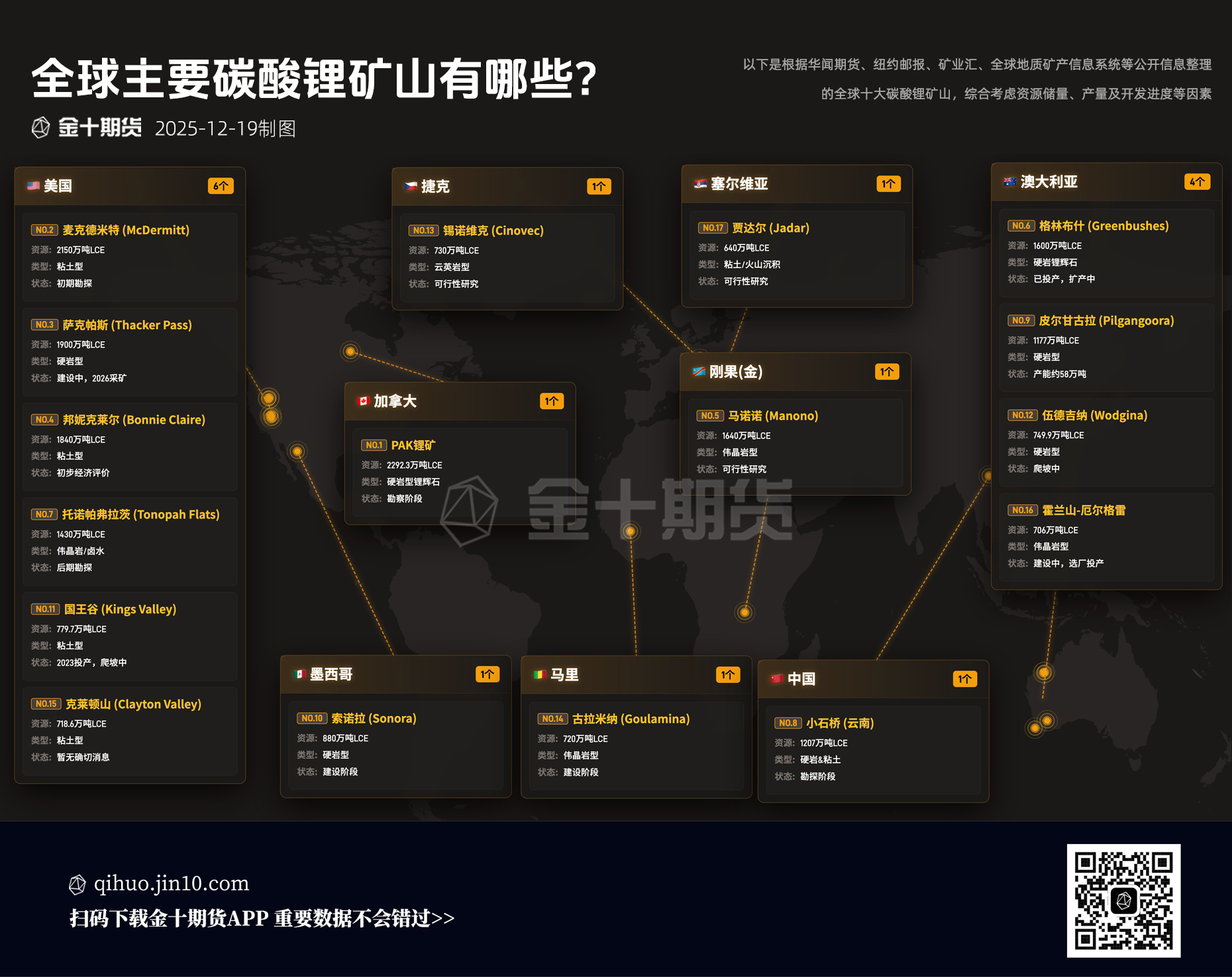 2小时前 全球主要碳酸锂矿山有哪些?| 金十期货热图