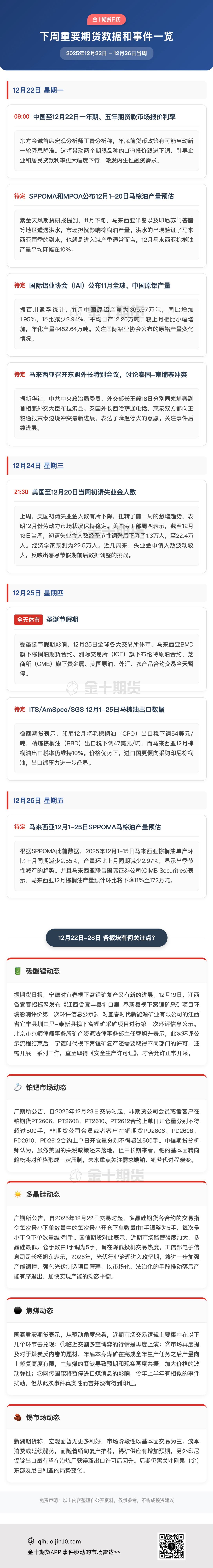6. 12月25日,因圣诞节假期,CME旗下贵金属、美油期货合约,ICE旗下布伦特原油、原糖、棉花期货合约,CBOT旗下大豆等期货合约,LME旗下金属期货合约等交易全天暂停。