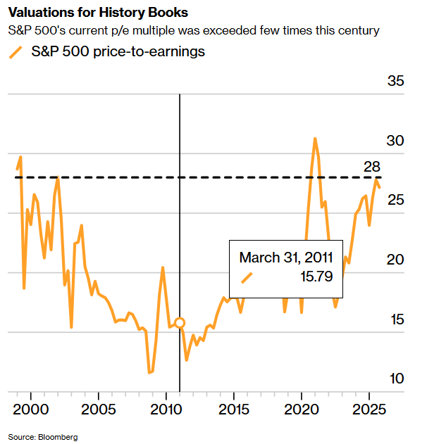 最终,富有韧性的企业盈利前景(部分得益于AI相关支出)拯救了投资者。标普500指数在4月下跌15%后,全年累计上涨16%,并有望实现连续第三年两位数涨幅。