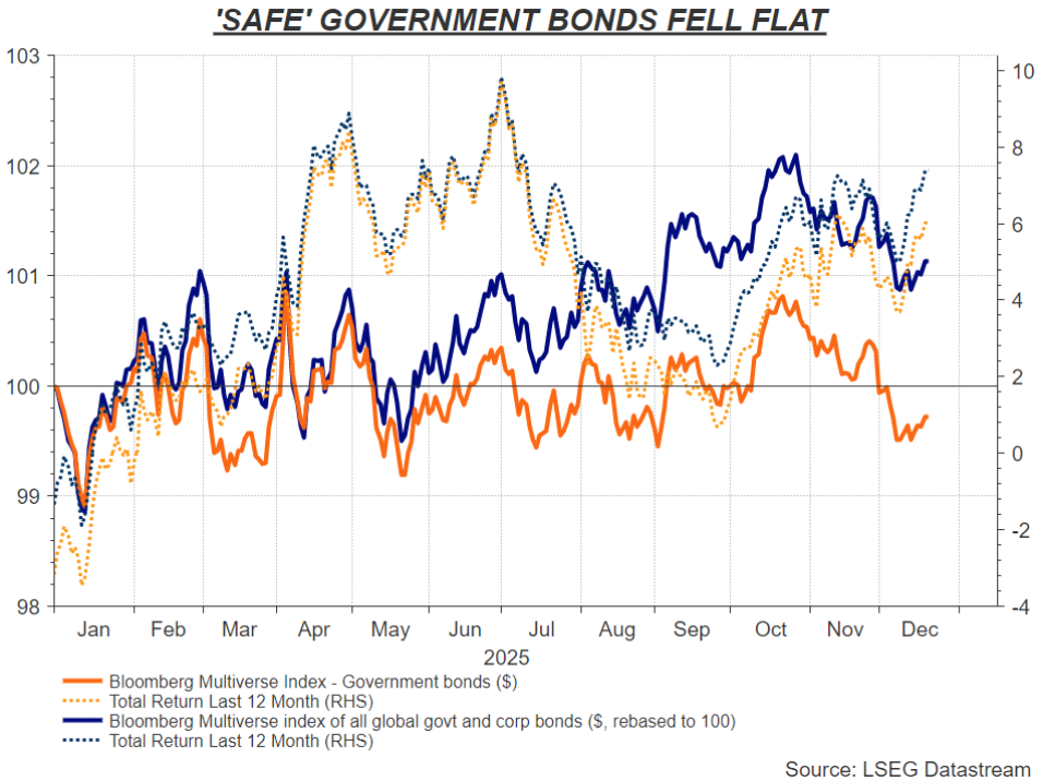 2025年,贵金属无疑是最大赢家,而几乎所有其他传统“避险”投资均表现不佳。在这一年里,市场充斥着动荡、冲突以及对人工智能泡沫的担忧,这样的结果着实令人瞩目。