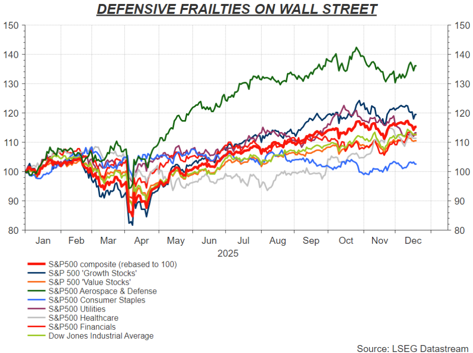 尽管公用事业、医疗保健和金融板块今年表现尚可,涨幅均超过10%,但均落后于主要指数。必需消费品板块涨幅仅约2%,排名垫底。