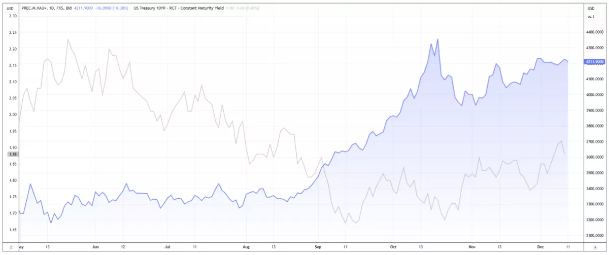 2025年的市场分化清晰印证了黄金对宏观经济的敏感性。6月至12月,随着实际收益率走低,黄金飙升至历史新高。这种反向关系仍是2026年黄金走势的最大驱动因素之一。