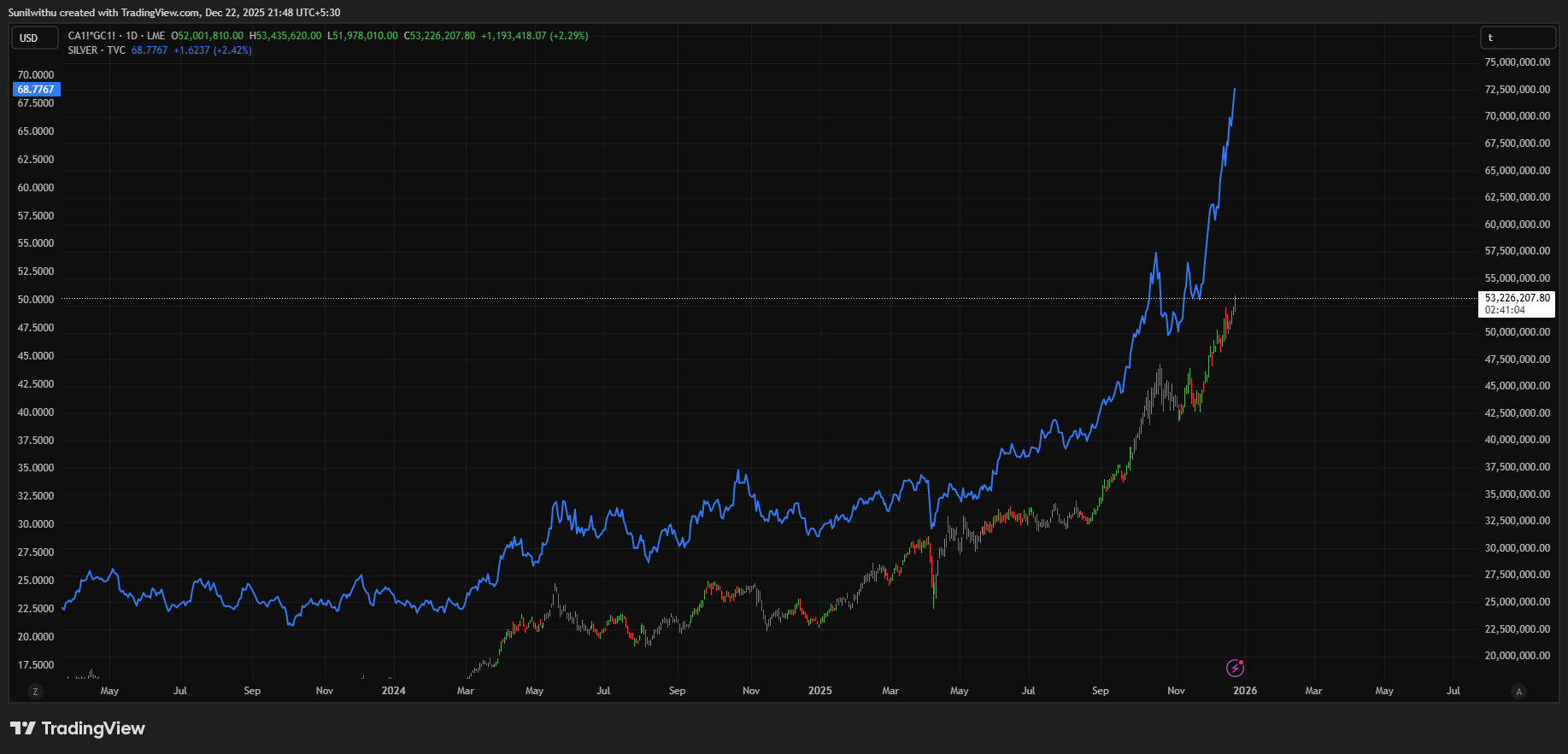 黄金映射货币压力与信任侵蚀;而铜反映实体工业流动。当两者同步上涨,便指向一种罕见的结构性转变:货币压力与工业活动同时攀升。白银正处在这个交汇点上——此刻它不再仅仅是一种金属,而是开始像货币一样被重新定价。简单的数学公式,传递出深邃的市场逻辑,确实是精妙的关联。