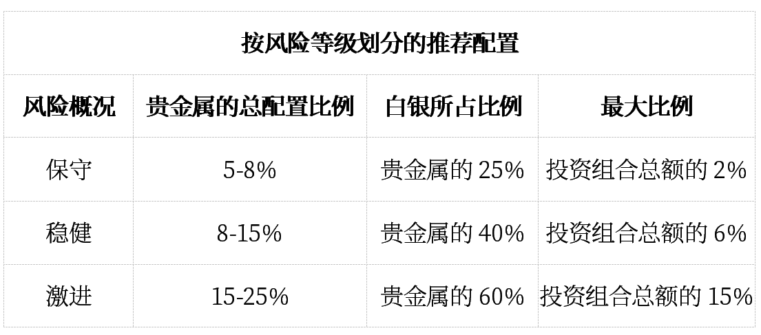 稳健策略:配置比例为10-20%,并将白银权重提高至50%;
