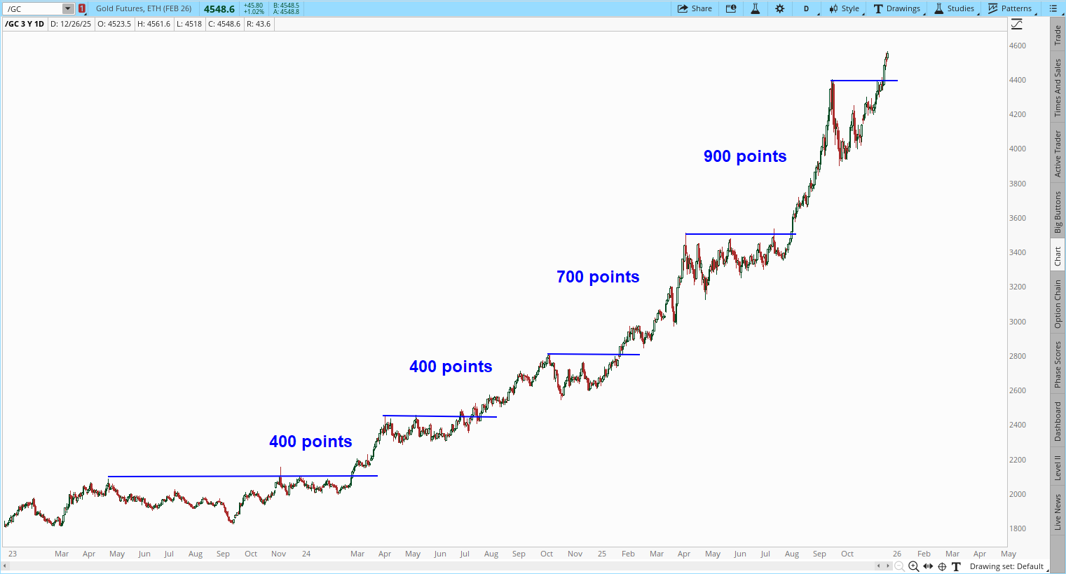 黄金才刚刚结束两个半月的盘整没几天,突破行情没有理由仅三天就会结束。我认为COMEX黄金期货的现实目标区间在5300-5500美元(与前三次突破行情的幅度大致相当)。当黄金价格达到5000美元中低区间时,白银期货的潜在上涨目标可能接近100美元。