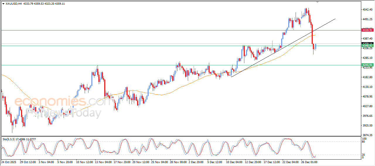 Economies.com的分析师今日最新观点:国际现货黄金在近期日内交易中上涨,试图收复此前部分跌幅,以缓解相对强弱指标上明显的超卖状态——尤其在指标开始释放积极信号之际,这一修复意图更为明确。然而,此次改善仍处于持续负面压力之下:价格此前已跌破次要看涨趋势线,且持续交投于50日指数移动平均线下方,形成动态压制,短期内实现可持续反弹的可能性因而受限。