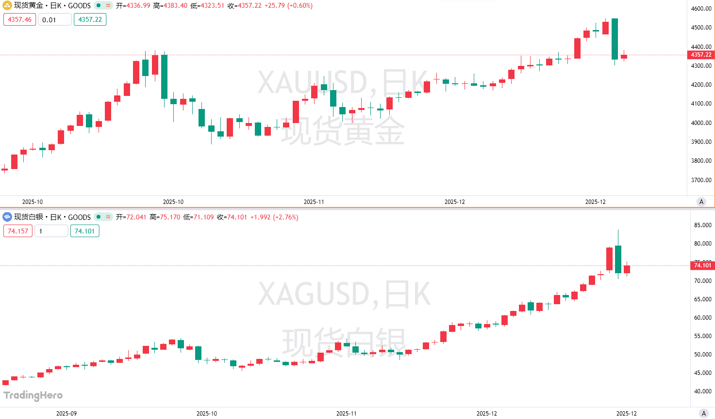 周一,现货黄金大跌超4%,并一度跌至4310美元附近,白银一度暴跌10%,创下2021年以来最差单日表现,此前一度触及每盎司80美元。