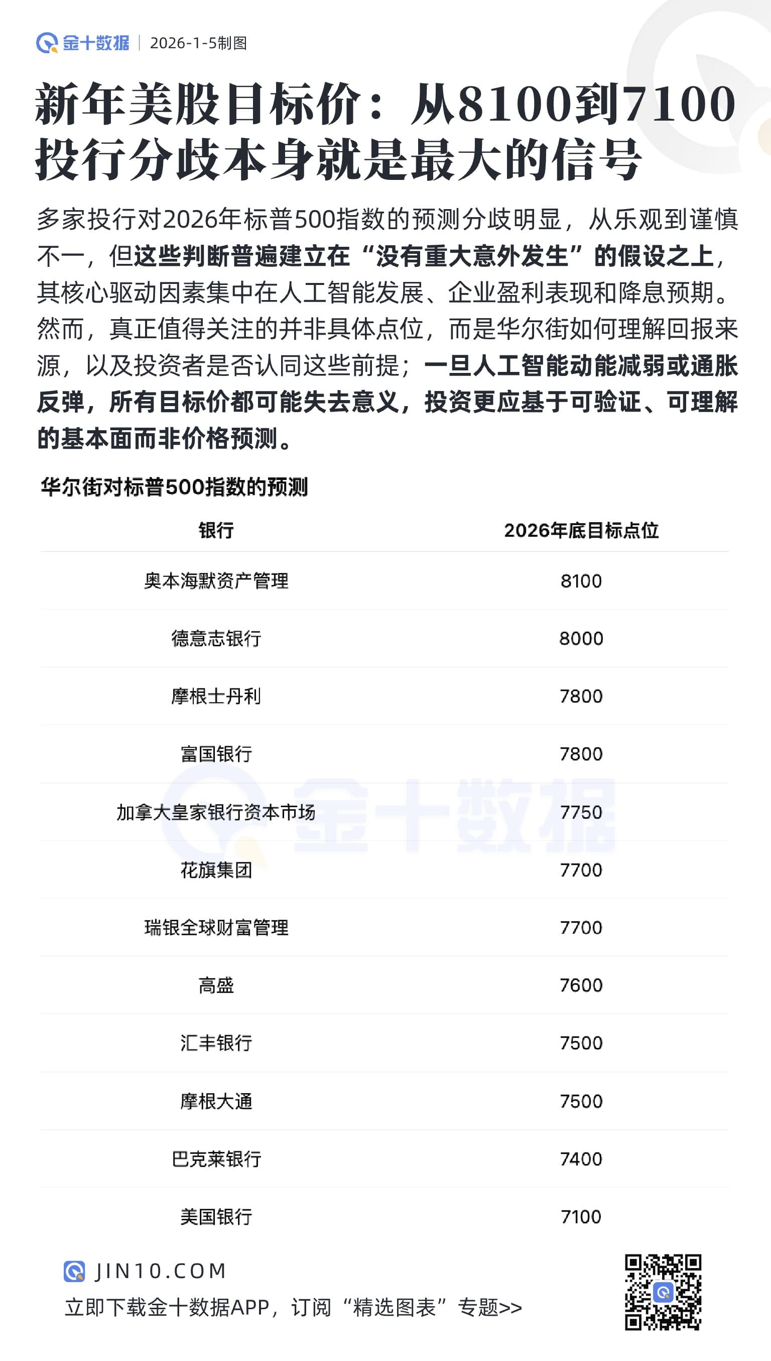 新年美股目标价:从8100到7100,投行分歧本身就是最大的信号