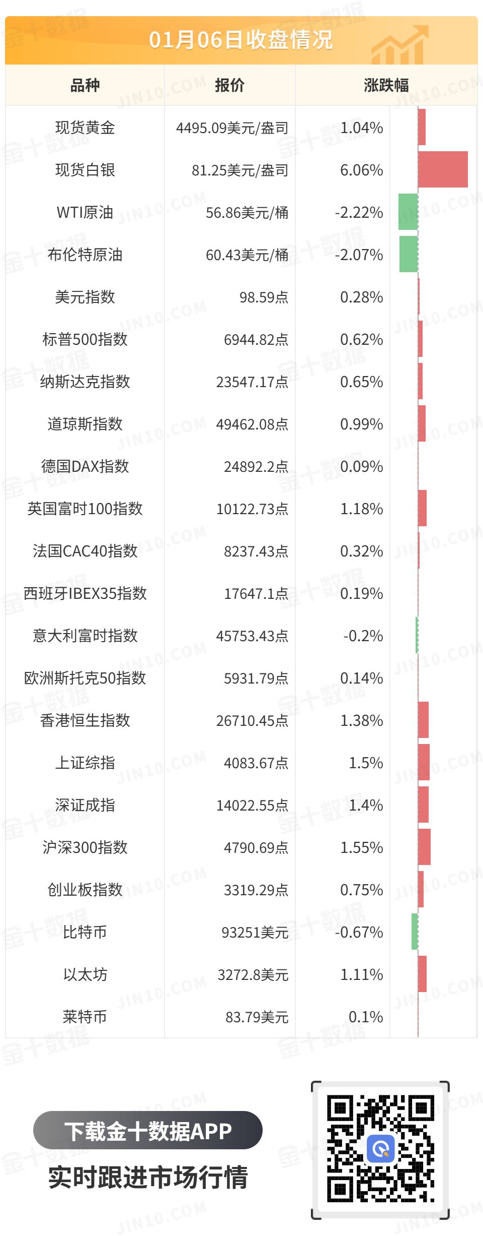 受地缘政治紧张局势引发的强劲避险买盘支撑,现货黄金维持涨势,逼近4500美元关口,最终收涨1.04%,报4495.09美元/盎司;现货白银站上81美元关口,最终收涨6.06%,报81.25美元/盎司,刷新去年12月29日以来的高位。
