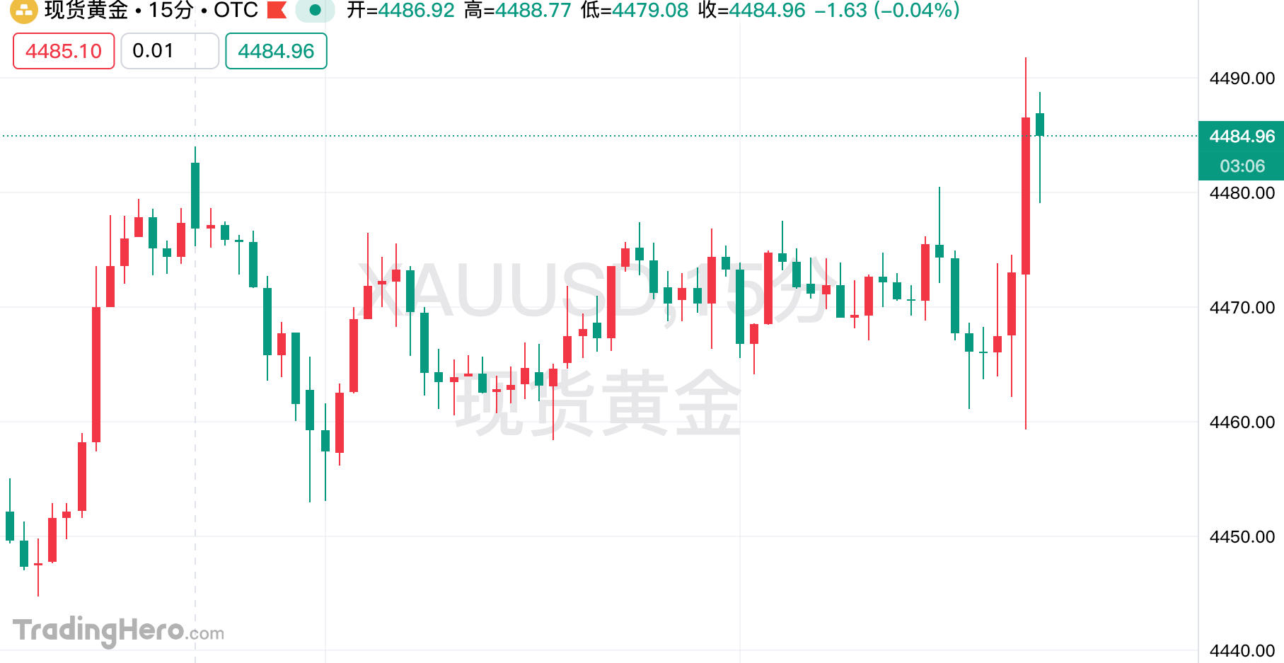 数据公布后,现货黄金短线拉升近30美元,美国短期利率期货下跌。