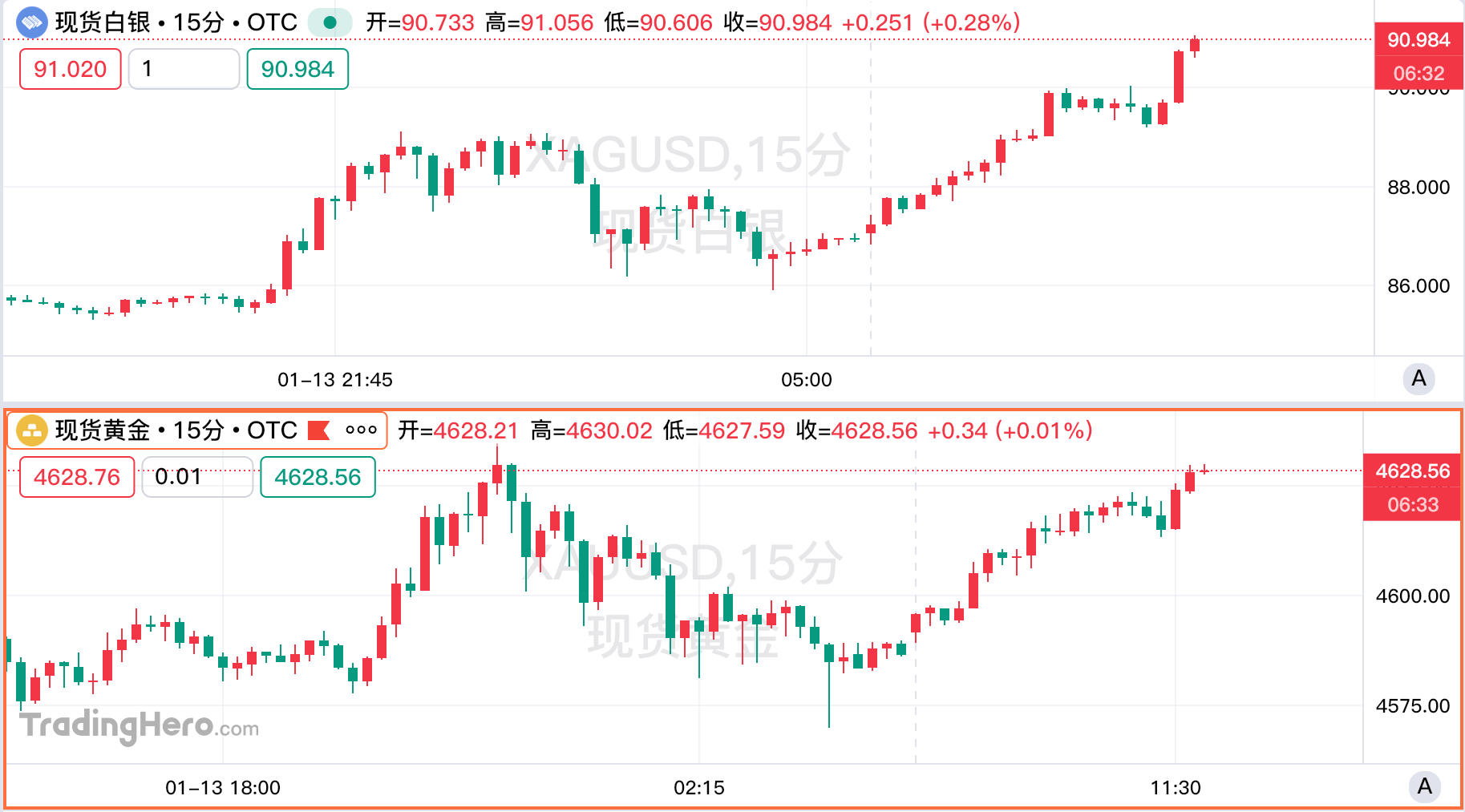 受美国通胀数据低于预期提振,市场对年内降息的押注持续升温,加之全球地缘政治局势紧张,现货白银价格周三历史性突破每盎司90美元。