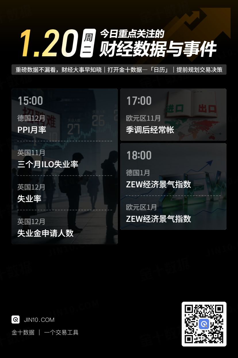 4、格陵兰岛问题:①德国财长:将对美国关税作出强有力回应。②法国财政部长:法国和德国同意就与格陵兰岛相关的关税威胁采取强硬行动。③欧盟发言人:欧盟领导人将于周四在布鲁塞尔召开紧急峰会。④市场消息:由于格陵兰岛争端升级,丹麦官员将缺席本届达沃斯论坛。⑤格陵兰岛总理:美国最新声明,包括关税威胁,并未改变我们不会让自己被施压的事实。