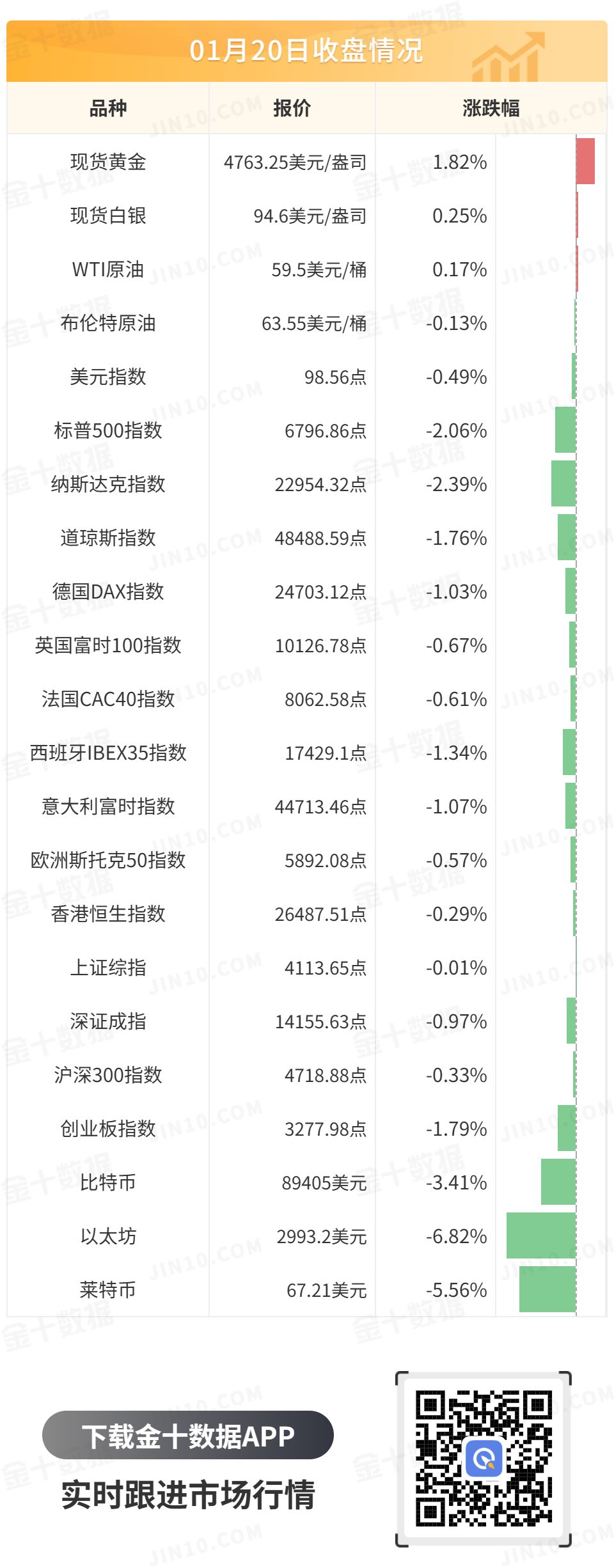 特朗普威胁要对欧洲盟友征收额外关税,引发对避险资产的抢购,现货黄金首次突破4760美元,最终收涨1.82%,报4763.25美元/盎司;现货白银刷新新高至95.86美元,最终收涨0.25%,报94.60美元/盎司。
