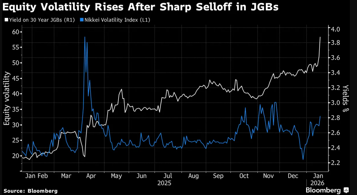 周二的东京交易时段被交易员们形容为近期记忆中最混乱的交易日。日本30年期和40年期国债收益率均飙升超过25个基点,这是自去年美国总统特朗普的“解放日”关税扰乱全球市场以来最大的波动。美国10年期国债收益率周二曾触及自去年8月以来的最高水平。