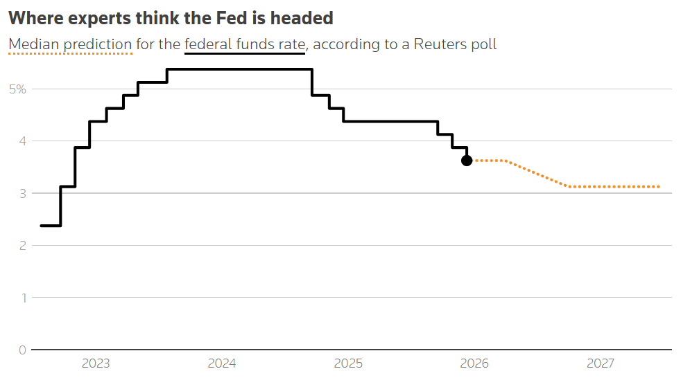 路透社调查显示,大多数经济学家预计,美联储将在本季度维持其关键利率不变,并可能将这一状态保持至主席鲍威尔于5月结束任期之时。这与上月调查时多数人预计至少会在3月前降息一次的情况相比,是一个转变。