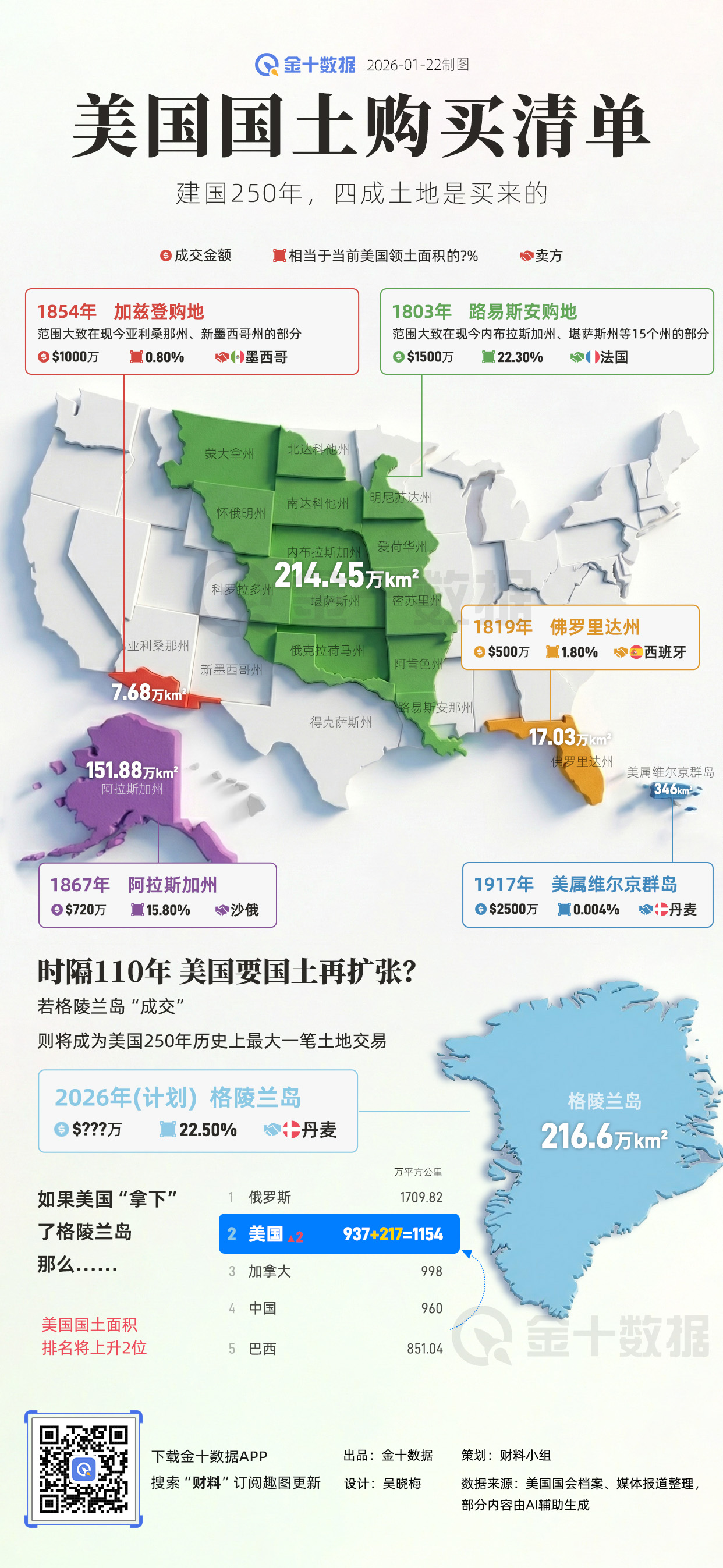 3小时前 小半个美国都是买来的?!那“买下格陵兰岛”这个想法也不算很离谱了|财料