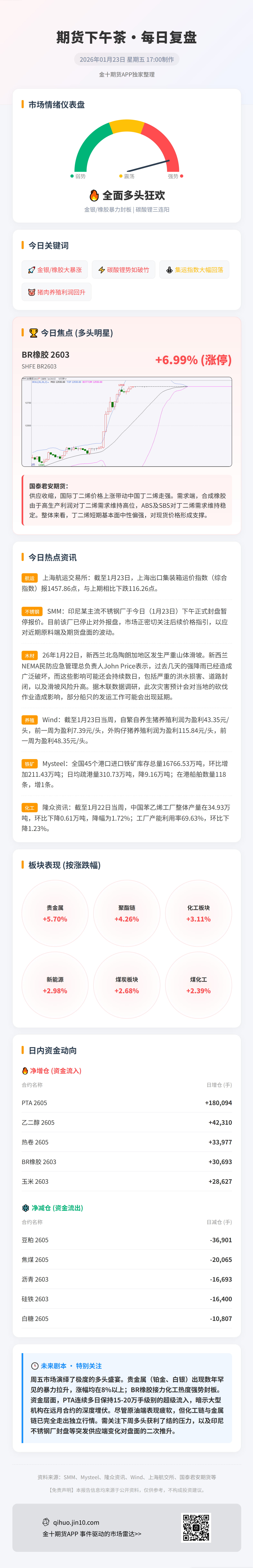 国信期货认为,消息面上,特朗普政府提出年底前“推动古巴政权更迭”的目标,并宣布将很快对与伊朗有贸易往来的国家征收25%关税,这些言论加剧了全球地缘紧张与贸易不确定性。尽管乌克兰和谈与美欧贸易协议可能重启的消息带来些许缓和,但整体风险氛围再度升温。此外,格陵兰岛局势虽在谈判中,但其养老基金可能减持美股的考虑,仍在对市场情绪产生一定影响。整体而言,金银或呈现震荡偏强格局。