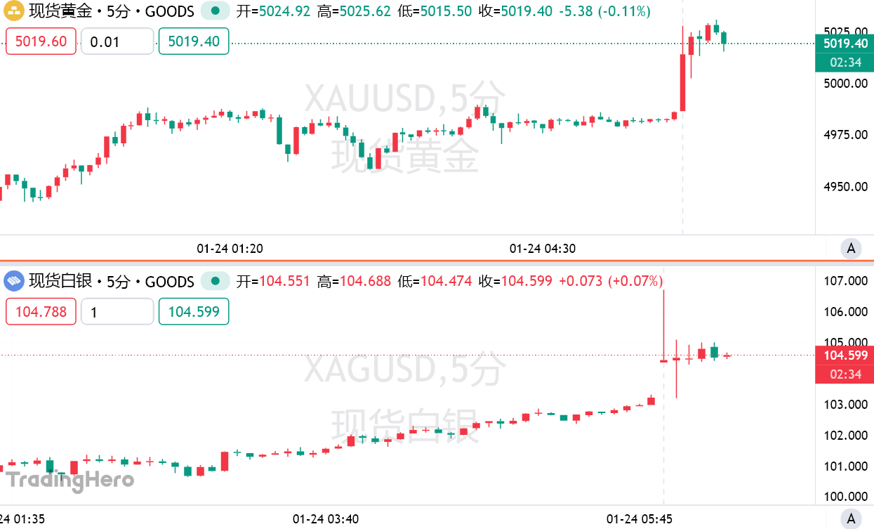 现货白银盘初也再创新高,首次突破106美元/盎司。与此同时,纳指期货周一盘初跌幅扩大至1.1%,标普500指数期货跌0.75%。受北极寒流影响,美国天然气期货价格上涨16%。