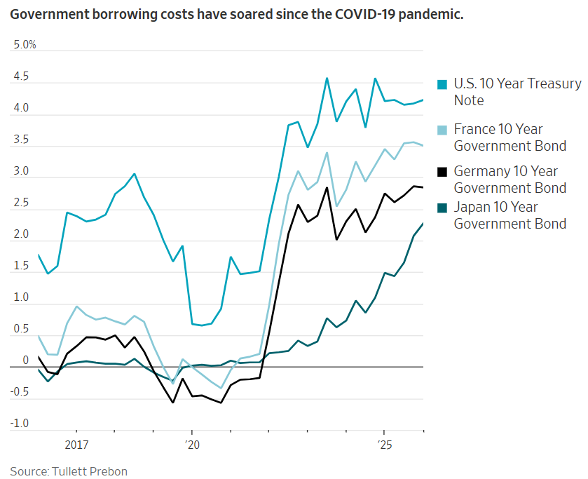 一些经济学家表示,随着支出越来越难以融资,一些政府最终可能不得不增税或削减开支。触发因素可能是投资者对政府偿还债务能力的信心丧失,甚至是对人工智能经济效益的重新评估,前国际货币基金组织首席经济学家莫里斯·奥布斯特费尔德(Maurice Obstfeld)表示。