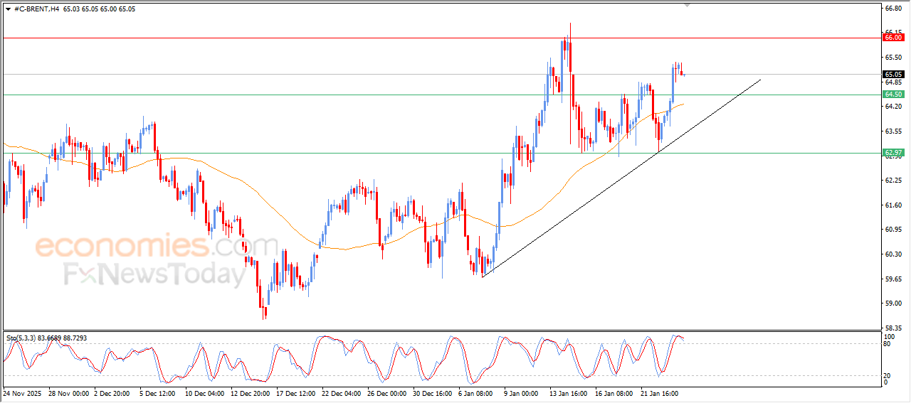Economies.com的分析师今日最新观点:WTI原油期货价格在最近的盘中交易中呈现震荡走势,试图通过盘整重新积蓄看涨动能,以支持后市重拾涨势。与此同时,盘面正努力修复相对强弱指标(RSI)中明显的超买状态,特别是随着负面交叉信号的释放,表明多头动能短期内有所衰减。尽管目前上攻势头有所放缓,但在价格稳固运行于50日指数移动平均线(EMA50)上方以及支撑趋势线的多重加持下,短期主多头趋势依然占据主导地位。这增强了在未来一段时期内继续维持看涨格局的概率。