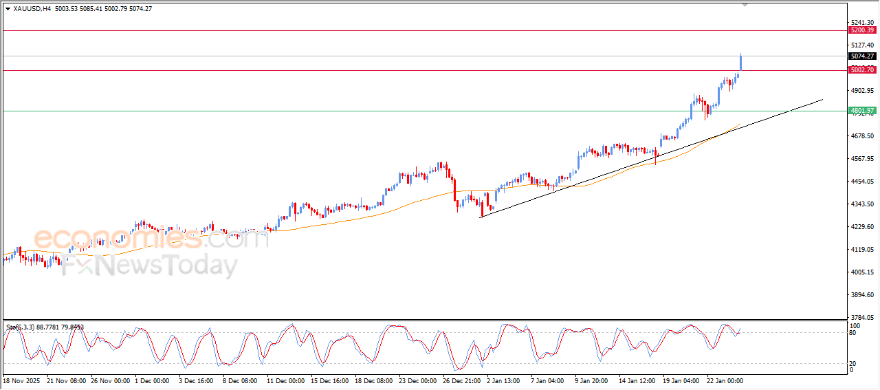 Economies.com的分析师今日最新观点:现货黄金在最近的盘中交易中持续走高,并首次突破5000美元的历史性阻力位。金价目前稳固站上50日指数移动平均线(EMA50),该均线作为关键的动态支撑位,确认了目前强劲的看涨动能,进一步巩固了短线多头趋势的主导地位。随着技术指标完成对前期超买状态的修复,相对强弱指标(RSI)释放的积极信号为价格提供了额外支撑,这不仅为日内涨幅的扩大铺平了道路,也为未来一段时期内冲击更高水平打开了上升空间。尽管可能会因为小规模的获利了结出现正常的震荡波动,但整体看涨格局并未发生动摇。
